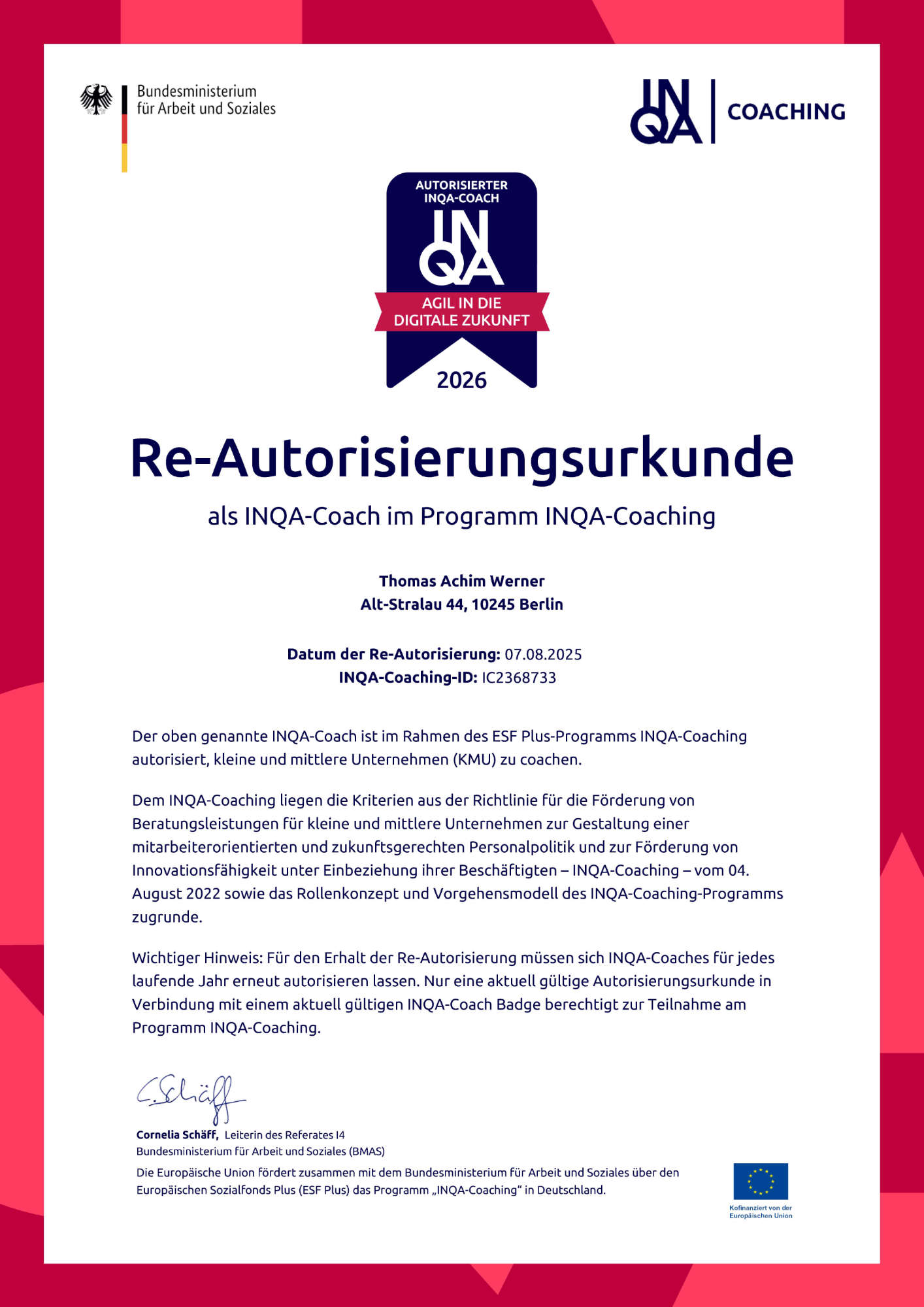 Schon im Rahmen des Vorgängerprogramms unternehmensWert:Mensch konnte die future steps – Unternehmensberatung viele Unternehmen dabei unterstützen, die Herausforderungen der Personalpolitik der Zukunft erfolgreich zu gestalten und sich optimal dafür aufzustellen. Beim neuen Förderprogramm INQA-Coaching steigen wir jetzt wieder mit ein! Für die future steps – Unternehmensberatung sind Thomas Achim Werner und Frank Nesemann ab sofort autorisierte Coaches des INQA-Programmes.